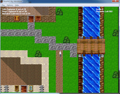 A 2D scrolling game I never finished where you capture cats, dogs and the alphabet. Its a kids game. Includes a level editor. I did not draw the graphics (I'm not an artist!) aside from drawing the cat, dogs and Amelia herself in the game. I downloaded the tiles as part of a free tile library. The sources are available under the sources section of this site.